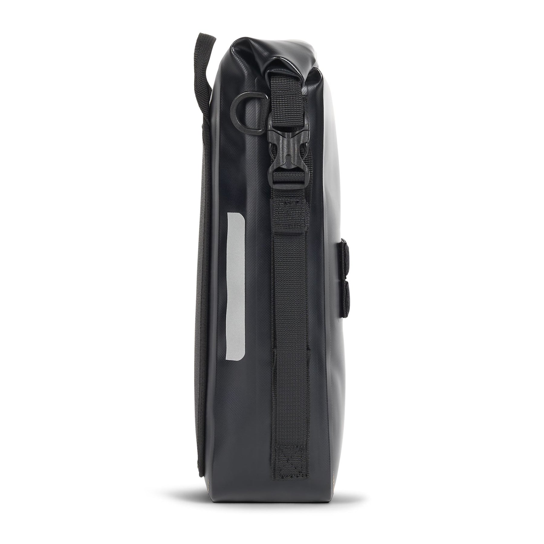 The deployable/removable sling bag strap offers an easy, comfortable way to carry items while walking around town, as well as for transporting small luggage and gear from bikes to hotel rooms.