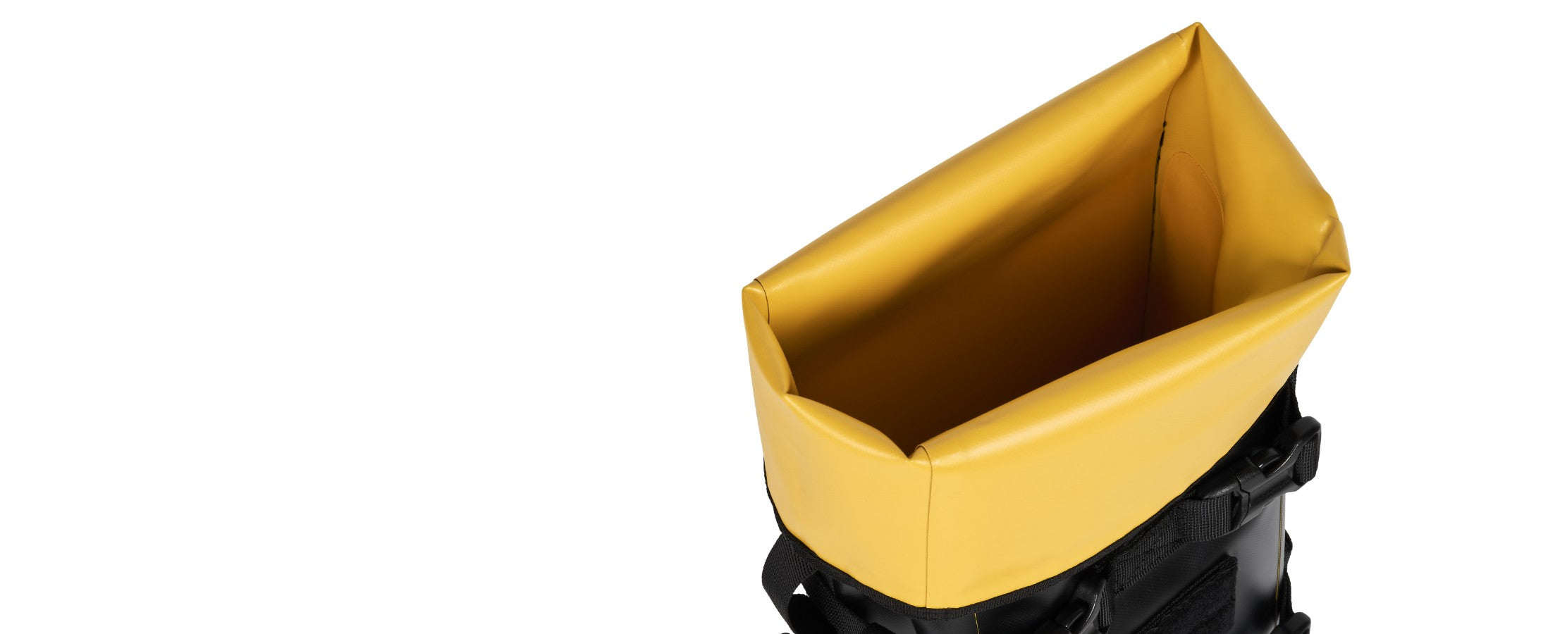 The bright yellow interior makes it easier to find your gear inside the bag. The 3.5-liter version can hold up to five 12-ounce/33cl beer cans.